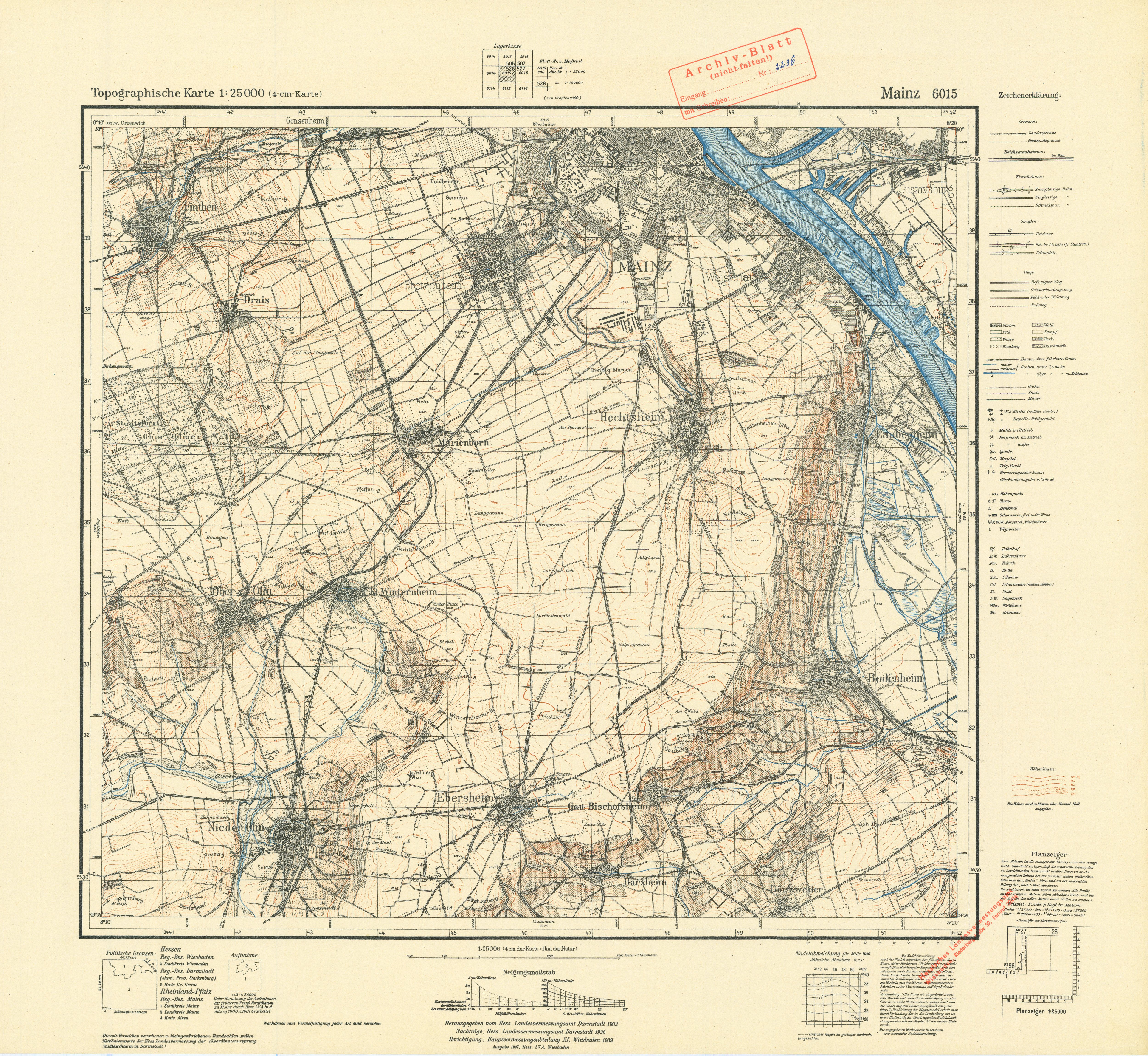 „Mainz, 1939“, in: Topografische Karten <https://lagis.hessen.de/de/orte/topografische-karten/alle-eintraege/1648_mainz-1939> (aufgerufen am 28.11.2025)