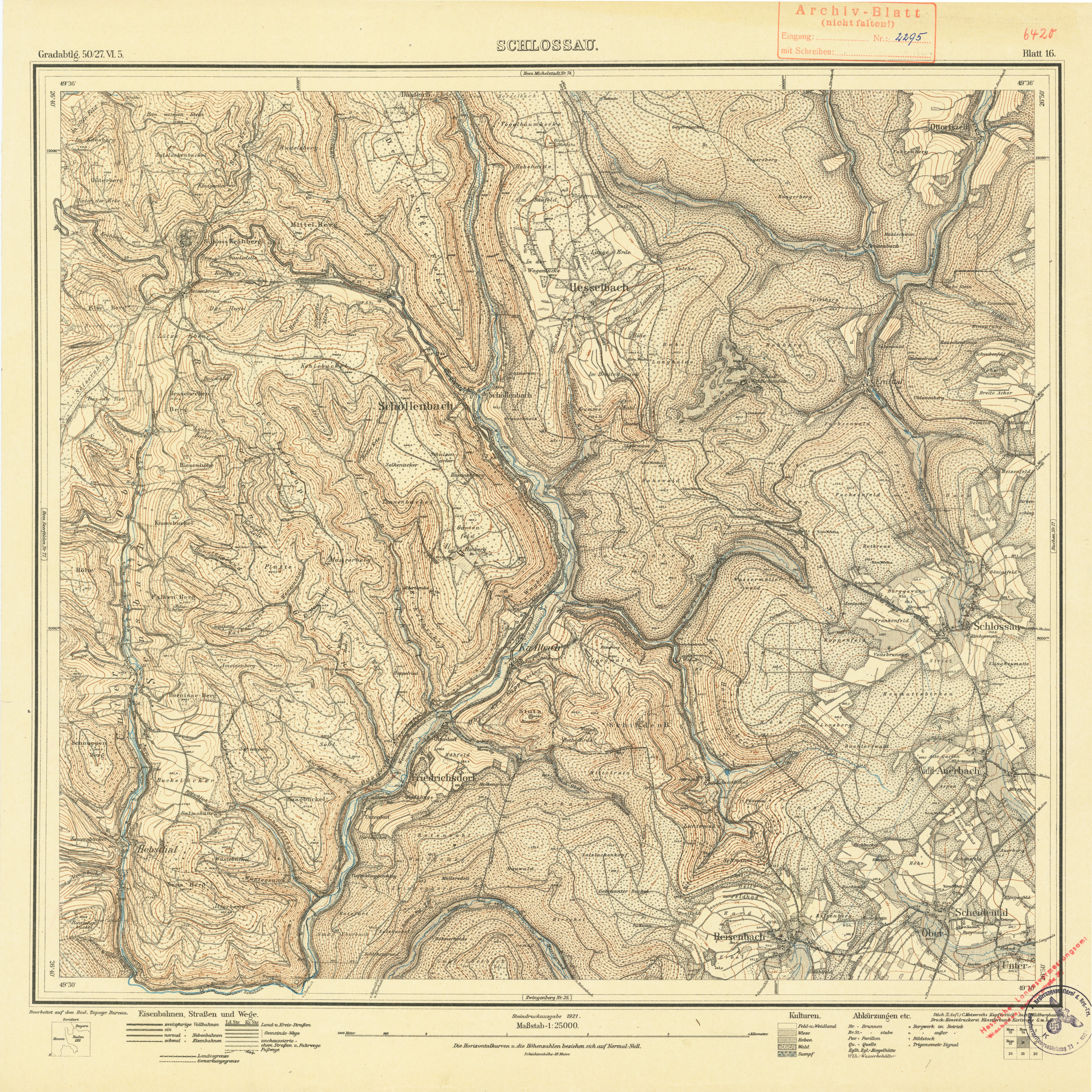 „Mudau-Schlossau, 1921“, in: Topografische Karten <https://lagis.hessen.de/de/orte/topografische-karten/alle-eintraege/1650_mudau-schlossau-1921> (aufgerufen am 25.11.2025)