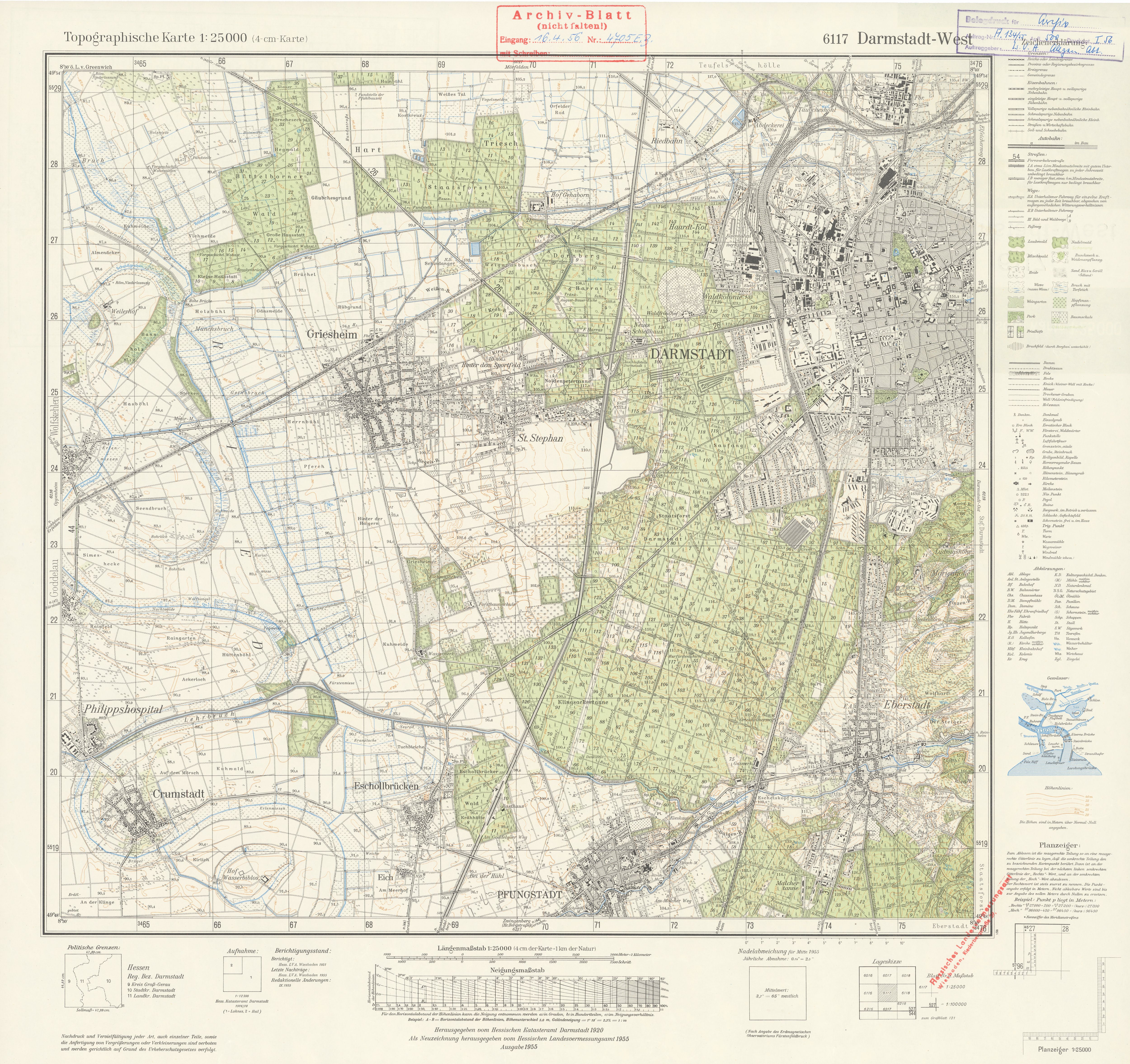„Darmstadt West, 1955“, in: Topografische Karten <https://lagis.hessen.de/de/orte/topografische-karten/alle-eintraege/2142_darmstadt-west-1955> (aufgerufen am 25.11.2025)