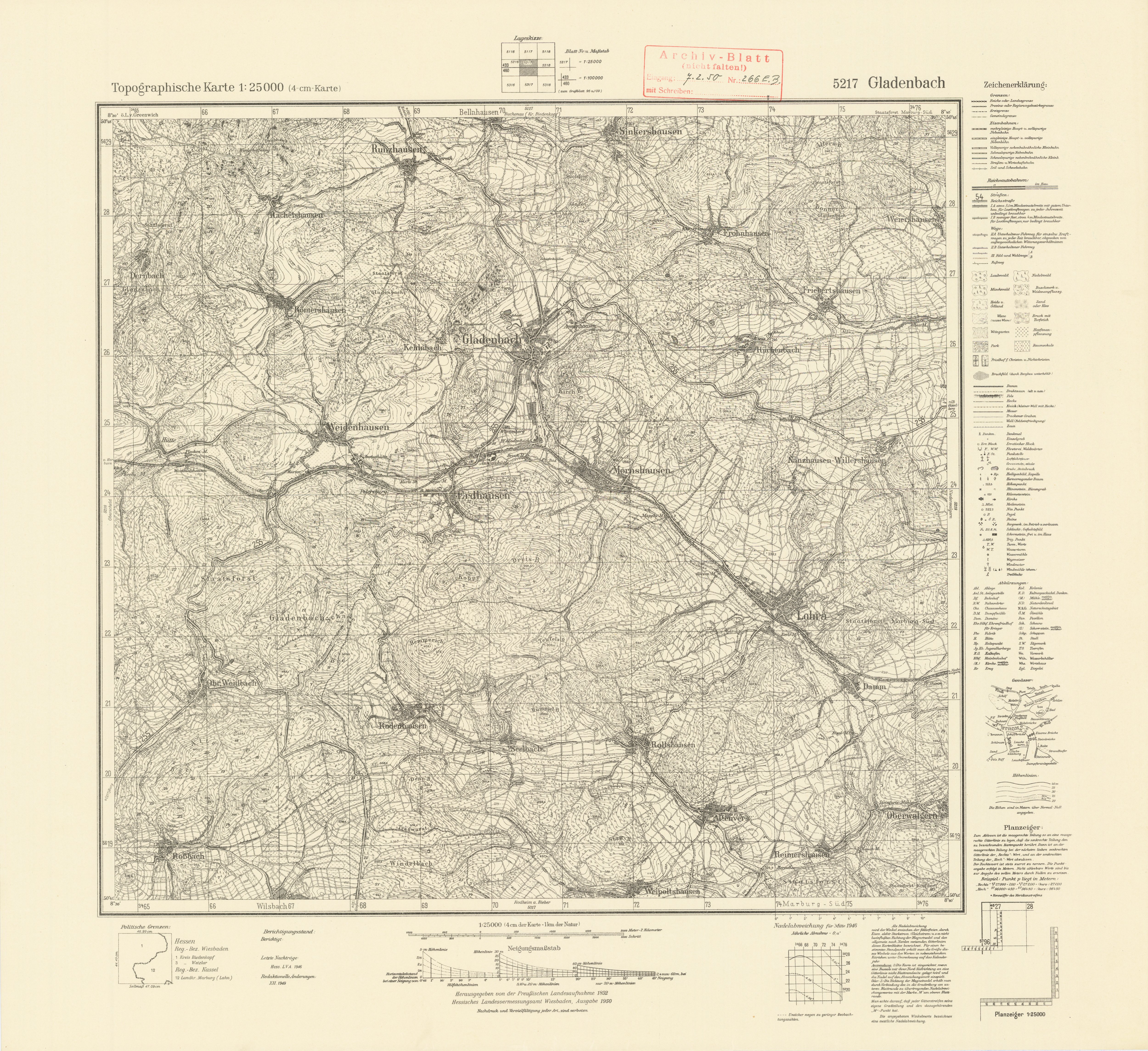„Gladenbach, 1946“, in: Topografische Karten <https://lagis.hessen.de/de/orte/topografische-karten/alle-eintraege/378_gladenbach-1946> (aufgerufen am 25.11.2025)