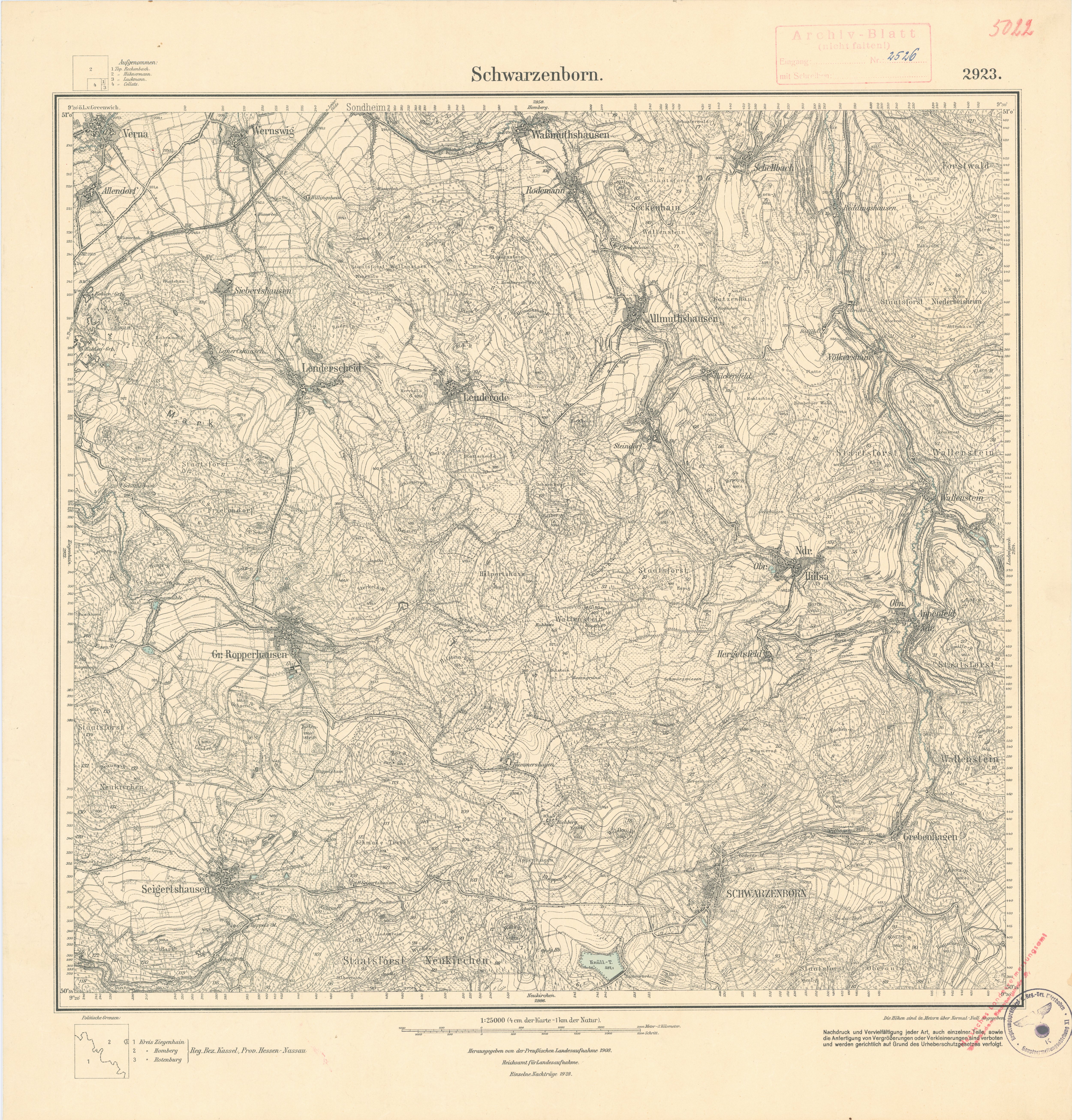 „Schwarzenborn, 1928“, in: Topografische Karten <https://lagis.hessen.de/de/orte/topografische-karten/alle-eintraege/500_schwarzenborn-1928> (aufgerufen am 25.11.2025)